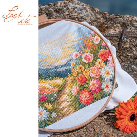 • Zählpackung mit Zählmuster, Kreuzstichset, Stickset gezählter Kreuzstich, Blumen, Garten, Landschaften