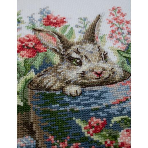 Rabbit in a Pot Stickpackung, Aine Kreuzstichset, Kaninchen Stickset, Oster Stickmotiv, Mini Cross Stitch Kit, Aida 14ct Stickset, kleines Stickprojekt Kaninchen, Kreuzstichpackung, Tiere, Hasen