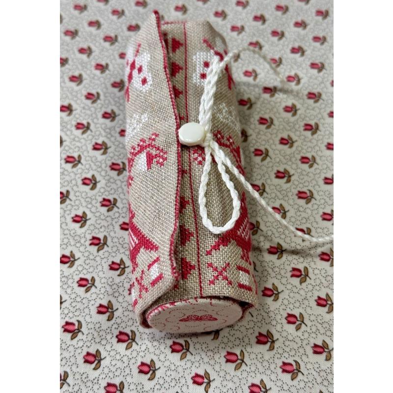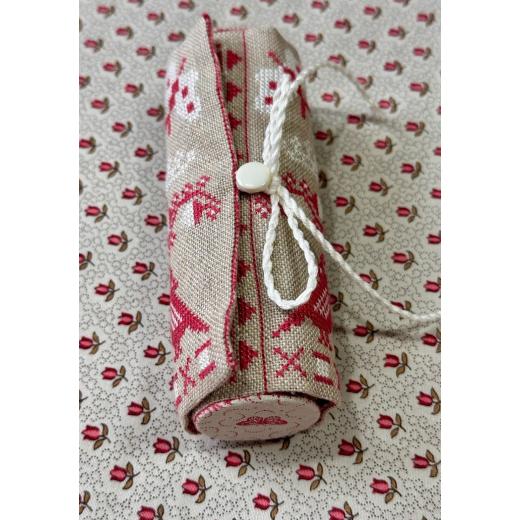 Mit monochromen Motiven, feinen Bordüren, Nähsymbolen und charmanten Accessoires entsteht ein komplettes Set, das ideal für alle ist, die schöne Organisation, traditionelle Rotstickerei und liebevolle Handarbeit schätzen.