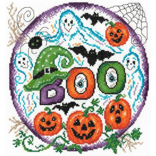 Die Kreuzstich-Stickvorlage Boo-Tastic Friends ist ein fröhliches Halloween-Stickmotiv voller verspieltem Charm und genau der richtigen Portion Gruselspaß. Freundliche Geister, lächelnde Kürbislaternen, flatternde Fledermäuse und ein schelmisches grünes Monster versammeln sich zu einem großen, kräftigen "Boo". Umgeben von Wirbeln, Spinnweben und festlichen Details wirkt dieses Design eher niedlich als gruselig - perfekt, um die heitere Seite von Halloween zu feiern.