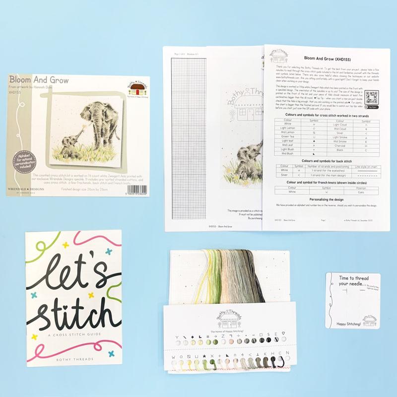 Bothy Threads Bloom And Grow, Kreuzstich Set Bloom And Grow, Hannah Dale Wrendale Designs Stickpackung, Bothy Threads XHD155, Stickpackung Tiermotiv, Kreuzstich florales Motiv, Wrendale Designs Cross Stitch, Stickpackung Naturmotiv, Stickpackung online kaufen, Tiere, Elefanten