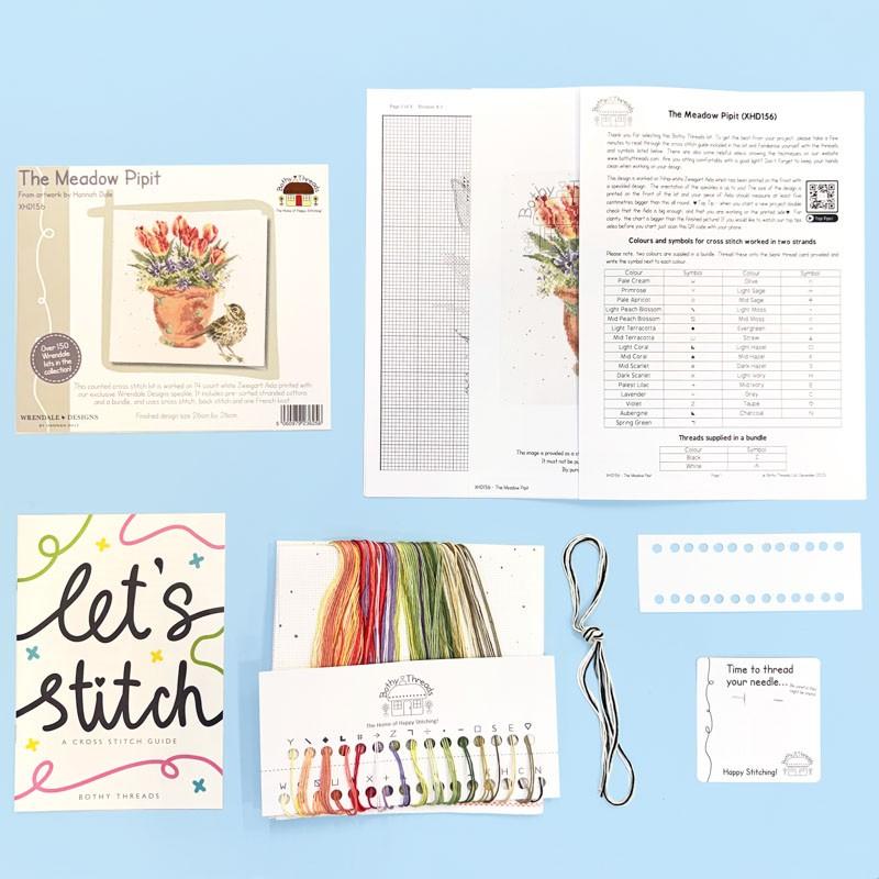 Bothy Threads The Meadow Pipit, Kreuzstich Set Meadow Pipit, Hannah Dale Wrendale Designs Stickpackung, Bothy Threads XHD156, Stickpackung Vogelmotiv, Kreuzstich Frühlingsmotiv, Bothy Threads Spring Collection, Stickpackung Naturmotiv, Stickpackung online kaufen