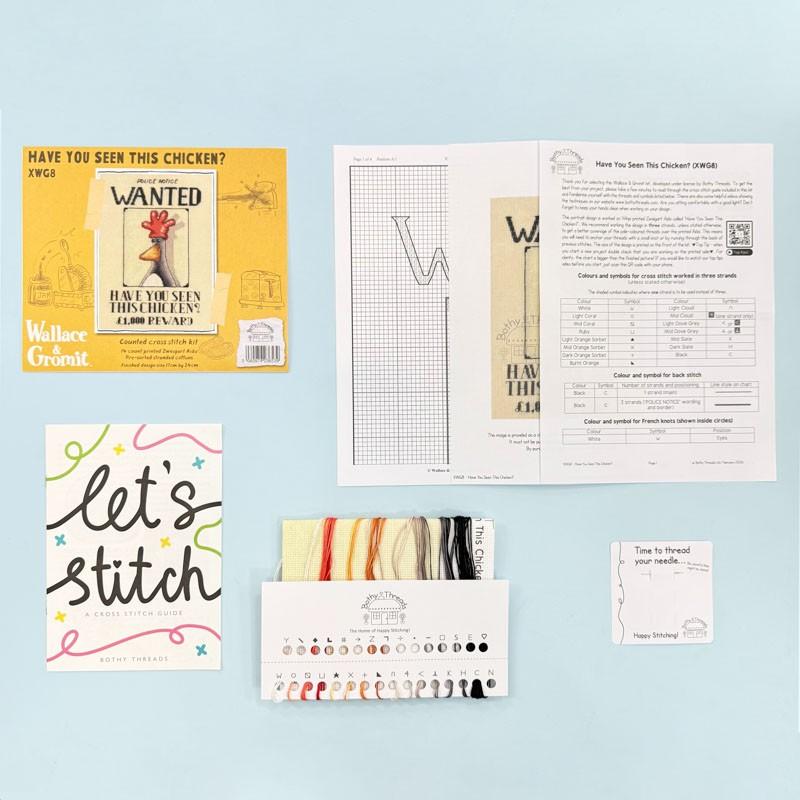Kreuzstichpackung, Bothy Threads Wallace & Gromit, Stickpackung Have You Seen This Chicken, Kreuzstich Feathers McGraw, Stickset britische Kultfiguren, Wallace & Gromit Cross Stitch Kit, Stickbild Wanted Poster, Stickpackung lustiges Motiv, Bothy Threads Stickset kaufen, Kreuzstich Cartoonmotiv, Stickpackung online kaufen