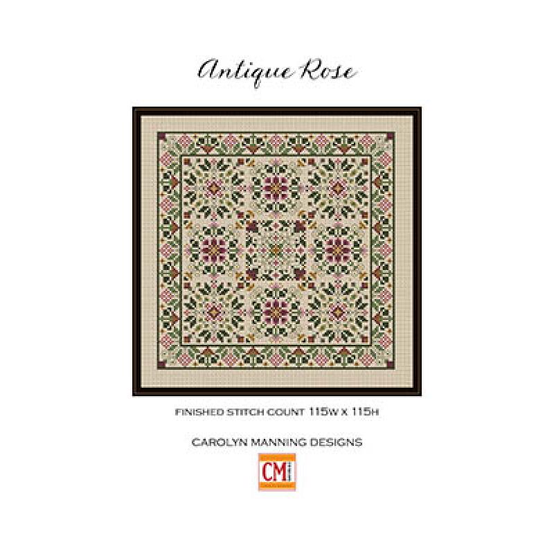 Die Stickvorlage „Antique Rose“ von CM Designs / Carolyn Manning Designs ist ein kunstvolles, quadratisches Ornamentmotiv, das florale Eleganz mit geometrischer Präzision verbindet.