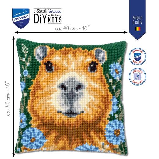 Das Kreuzstichkissen Capibara ist die perfekte Wahl für alle, die hochwertige Handarbeitsprojekte lieben. Dieses Stickkissen mit einem Wasserschwein aus der Familie der Meerschweinchen überzeugt durch eine sorgfältige Verarbeitung, ein ansprechendes Design und ein angenehmes Stickgefühl. Ob als dekoratives Wohnaccessoire oder als persönliches Geschenk – mit diesem Kissen entsteht ein einzigartiges, handgefertigtes Kunstwerk.