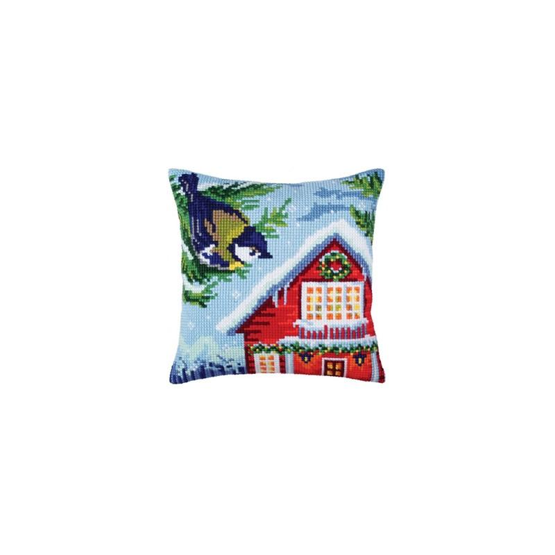Kreuzstichkissenpackung, vorgemalt, Stickkissen, Weihnachten, Winter, Weihnachtshaus