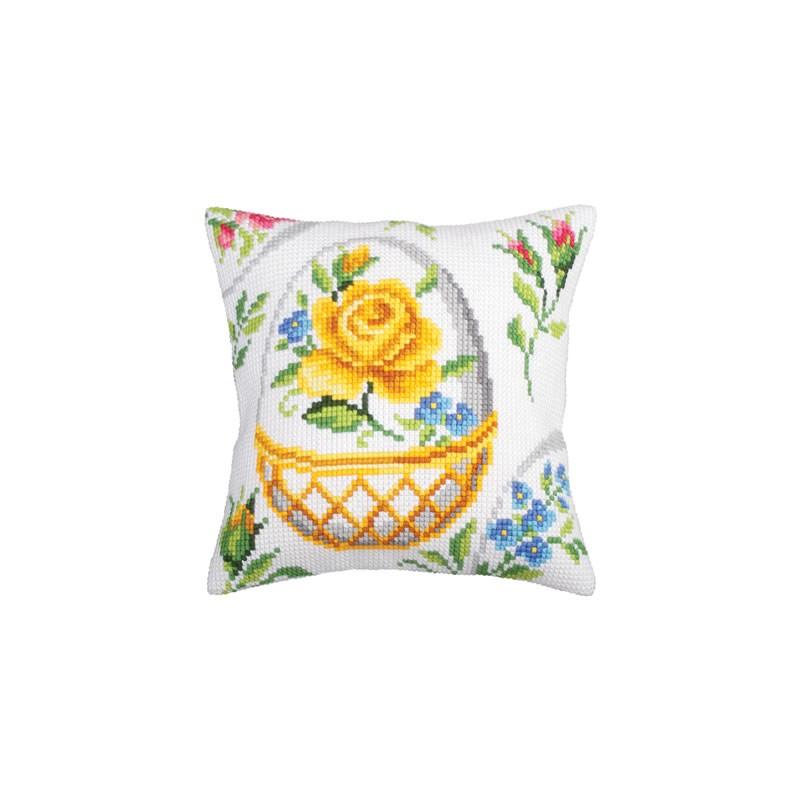 Kreuzstichkissenpackung, vorgemalt, Stickkissen, Blumen, Garten, Ostern, Osterkörbchen
