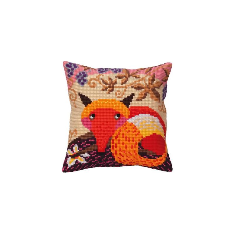 Kreuzstichkissenpackung, vorgemalt, Stickkissen, Tiere, Füchse, Fuchs mit Weintrauben