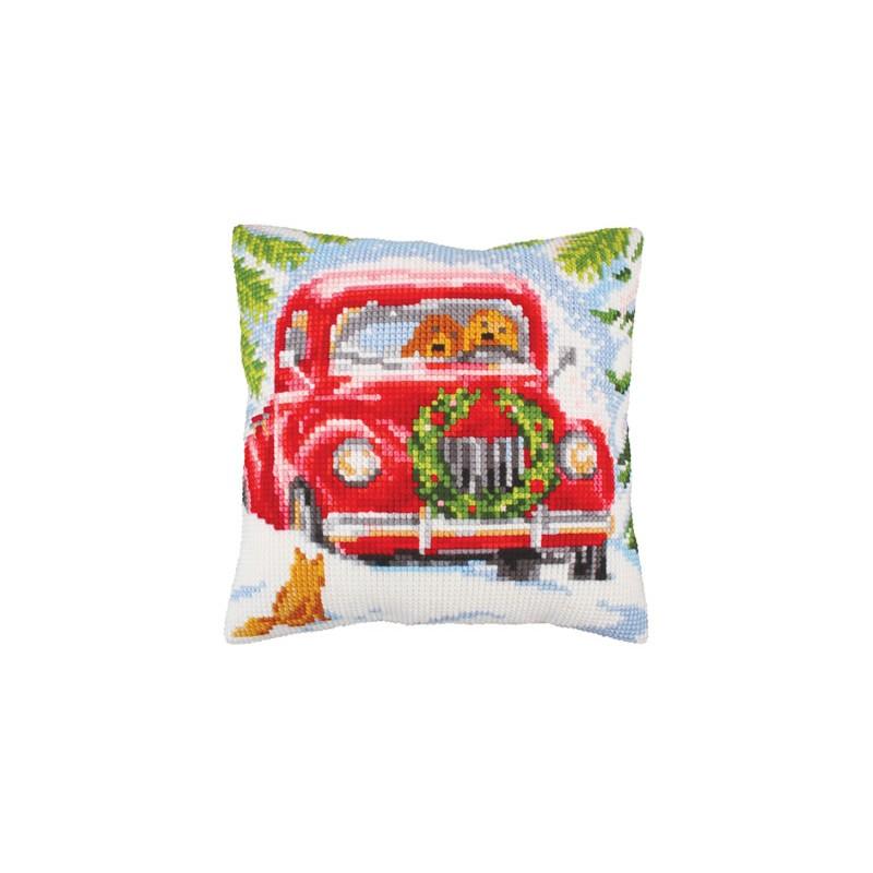 Kreuzstichkissenpackung, vorgemalt, Stickkissen, Weihnachten, Advent, Weihnachtsauto
