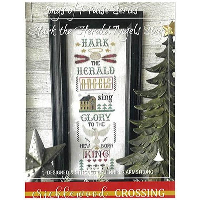 Hark the Herald Stickvorlage, Cricklewood Crossing Weihnachten, Songs of Praise Serie, Christmas cross stitch, Weihnachtslied Stickmuster, Engel Trompete Kreuzstich, festliche Stickvorlage, Holiday Needlework, Weihnachtsdeko Stickerei, klassisches Weihnachtsmotiv