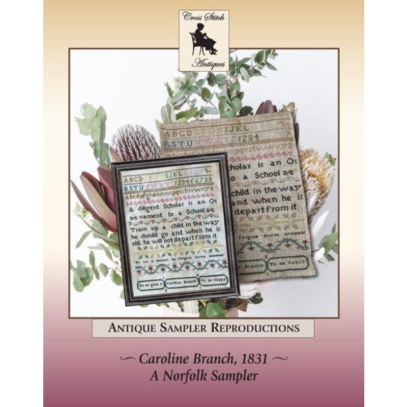 Caroline Branch 1831 Stickvorlage, Cross Stitch Antiques Sampler, Norfolk Sampler Reproduction, historischer Sampler Kreuzstich, Alphabet Sampler Stickmuster, Antique Sampler Reproduction, 19. Jahrhundert Stickvorlage, englischer Mädchensampler, klassisches Kreuzstichdesign, Reproduction Sampler Vorlage