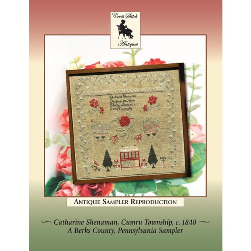 Catharine Shenaman 1840 von Cross Stitch Antiques ist eine detailreiche Reproduktion eines historischen Samplers aus Berks County, Pennsylvania. Das Original wurde um 1840 von der jungen Catharine Shenaman gearbeitet und zeigt typische Elemente der regionalen amerikanischen Sticktradition: ein kleines Haus, Bäume, Blumen und sorgfältig gesetzte Schrift. Der Sampler verbindet Naivität und Eleganz – ein authentisches Stück amerikanischer Stickgeschichte.