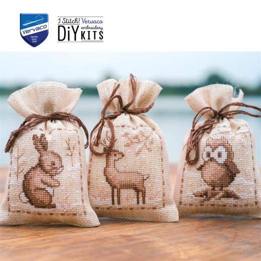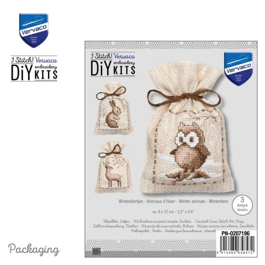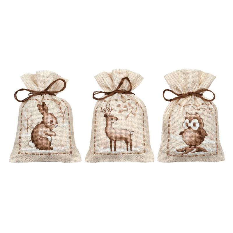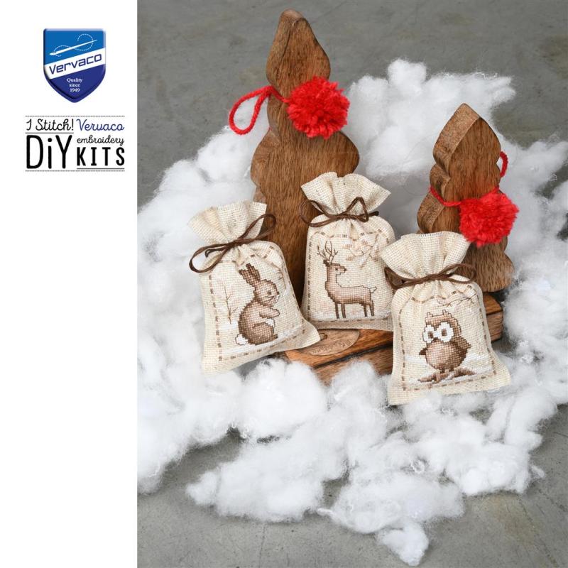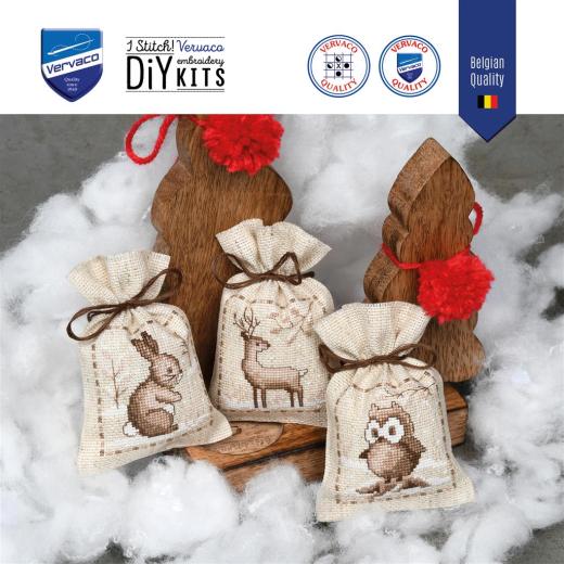 Geschenksäckchen Tiere im Winter 3er-Set - Vervaco Verachtert (Stickpackung)