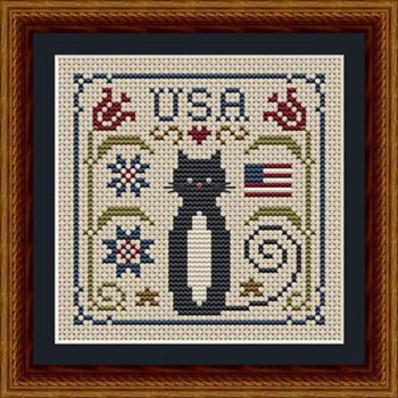 Americana Stickvorlage Katze, USA Katze Stickmuster, Patriotic Cat Stickvorlage, Unabhängigkeitstag Stickmuster, Folk Art Katze Stickmotiv, Sommer Stickvorlage USA, Katzenmotiv Kreuzstich patriotisch, Stickmuster Schwarz Weiß Katze, Stickvorlage Sterne und Flagge, Kreuzstich USA Motiv