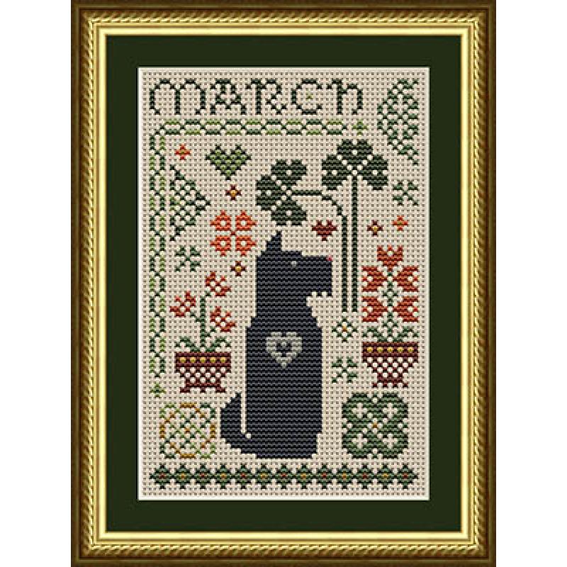 Die Stickvorlage „Scottie March Dog“ von Happiness Is Heartmade ist ein liebevoll gestaltetes Monatsmotiv, das den März mit einem süßen Scottie‑Hund, frischen Farben und typischen Frühlingssymbolen feiert.