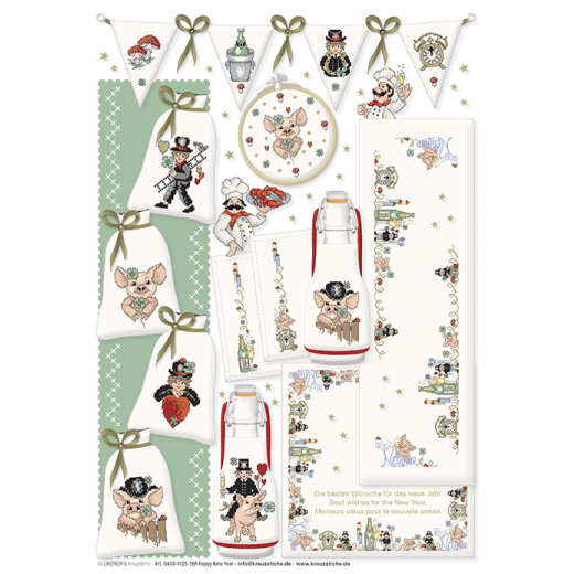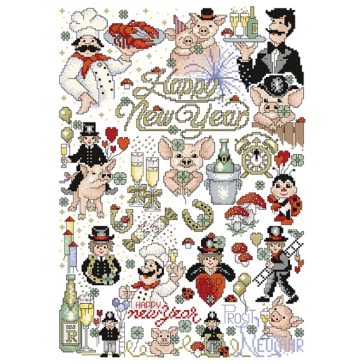 - Zählvorlage, Zählmuster, Familienfeste, Prosit Neujahr, Koch, Alles wird gut, Hufeisen, Hummer, Ober, Champagner, Schweinchen, Marienkäfer, Glücksbringer, Knallbonbon, Glücksklee, Glückspilz, Schornsteinfeger, Uhr, Herz, Feuerwerk