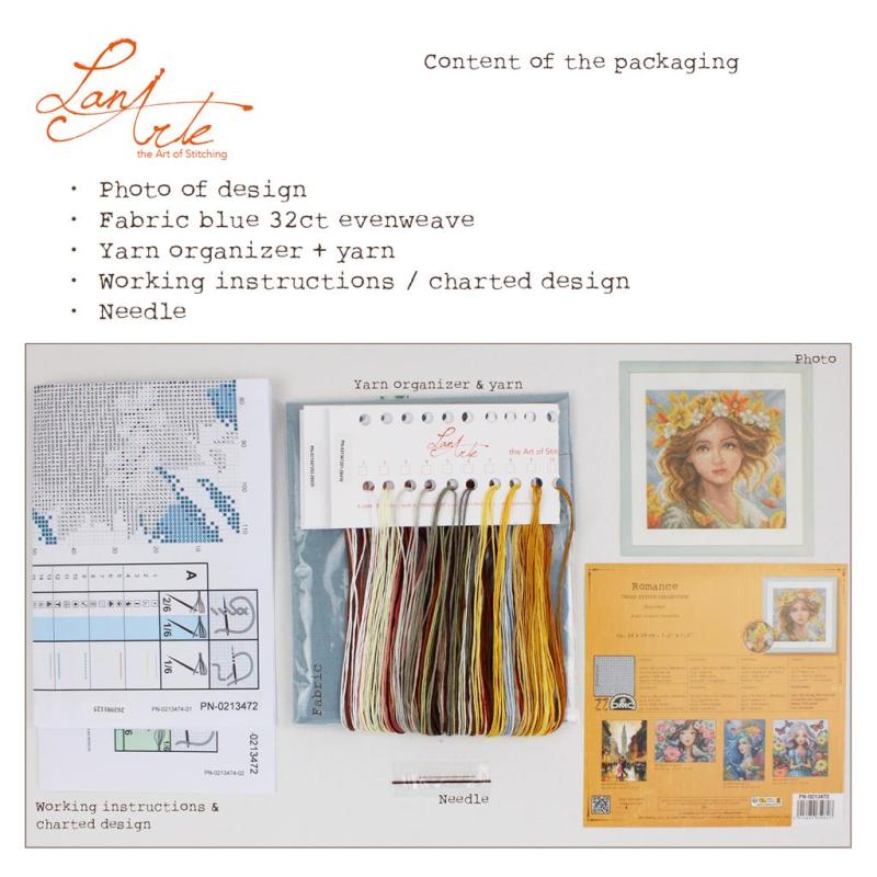 • Die Packung enthält Zählstoff Evenweave 32ct -  12,6fädig, 6,4 Stiche / cm (52% Baumwolle, 48% Modal ), Stickanleitung in 8 Sprachen, 6-fädiges DMC Stickgarn mit Garnorganisator 38 Farben (100% Baumwolle), Metallicstickgarn goldfarben, Frontbild und Sticknadel