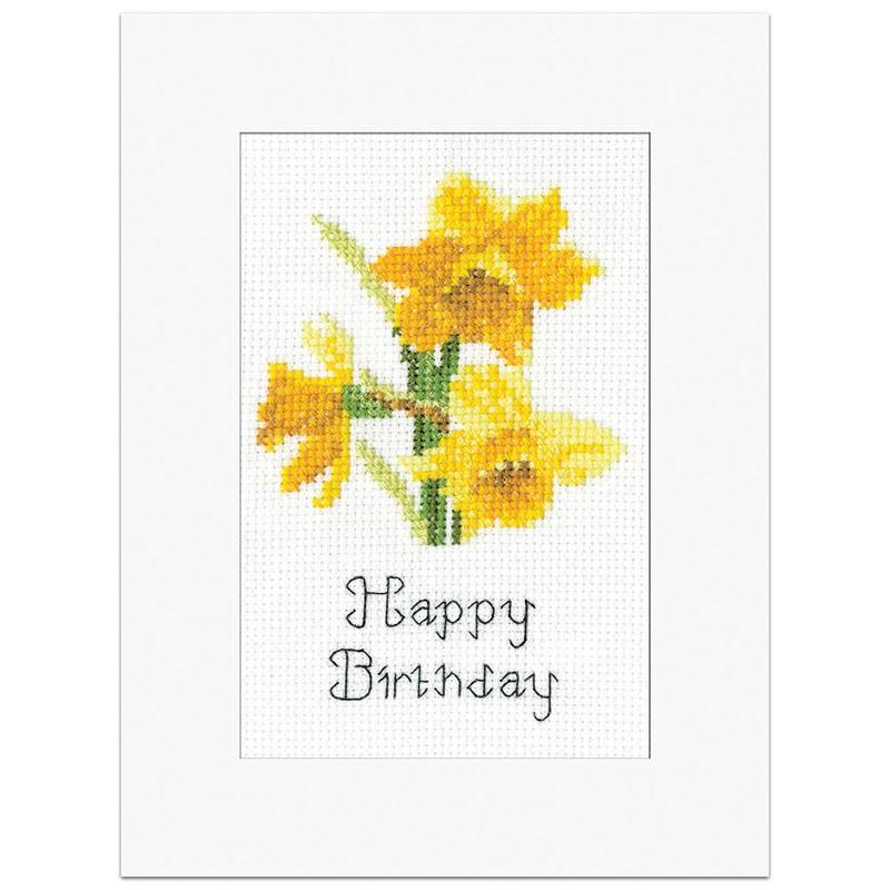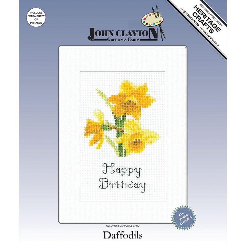Cross Stitch Kit Daffodil, Heritage Crafts Greeting Card, Stickpackung Narzisse, Kreuzstich Grußkarte, Stickset 14 Count, Floral Cross Stitch, Handmade Greeting Card Kit, Stickkarte Frühling, Stickset Blumenmotiv, Kreuzstichpackung