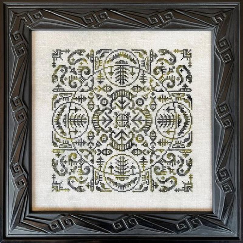 New Alchemy: Abundance von Ink Circles ist ein kunstvolles, symmetrisches Ornamentdesign, das die typische Handschrift der Designerin trägt: klare Struktur, raffinierte Geometrie und eine Prise Mystik. Das Motiv vereint kreisförmige Elemente, florale Details und alchemistisch anmutende Muster zu einer harmonischen Komposition. Die ruhige Farbpalette in Grün‑, Grau‑ und Schwarztönen verleiht dem Design eine elegante, moderne Ausstrahlung. Perfekt für alle, die dekorative Muster, anspruchsvolle Stickerei und die Ink‑Circles‑Ästhetik lieben.