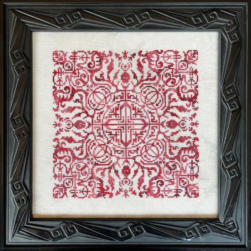 New Alchemy Strength Stickvorlage, Ink Circles Cross Stitch, ornamentales Stickmuster, geometrische Kreuzstichvorlage, alchemistische Stickerei, rotes Stickmotiv, symmetrisches Stickdesign, dekoratives Wandbild Kreuzstich, anspruchsvolle Stickvorlage, Ink Circles Pattern