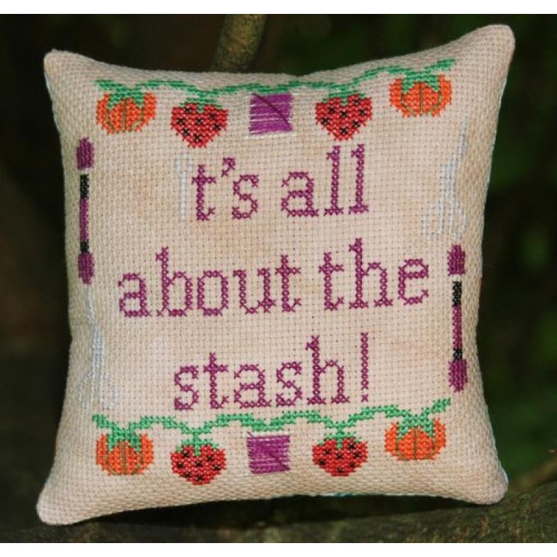 - Zählmuster zu den Themen und Motiven: kleines Kissen mit dem Schriftzug "It's all about the stash"