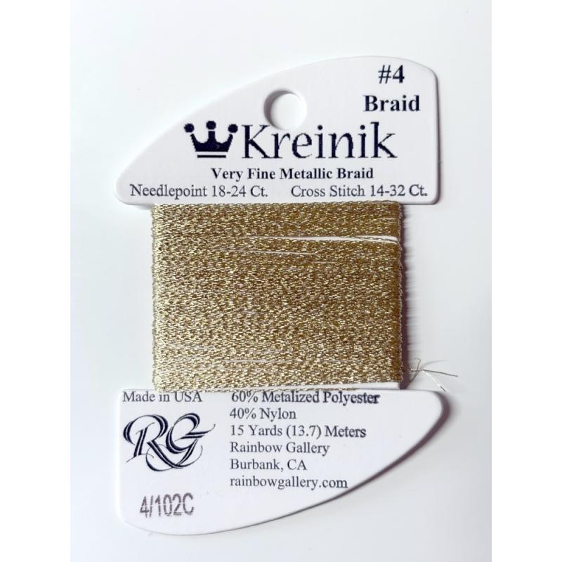 Kreinik #4 102C Very Fine Braid – Metallisches Stickgarn für feine Glanzeffekte von Rainbow Gallery
