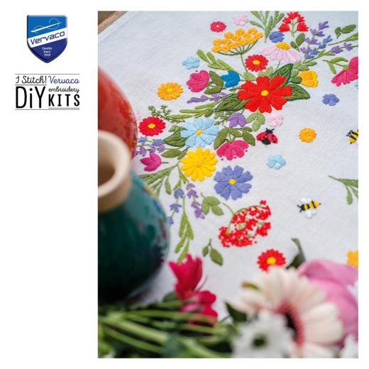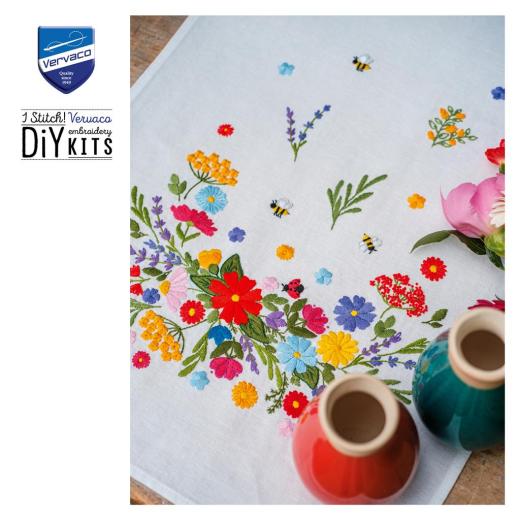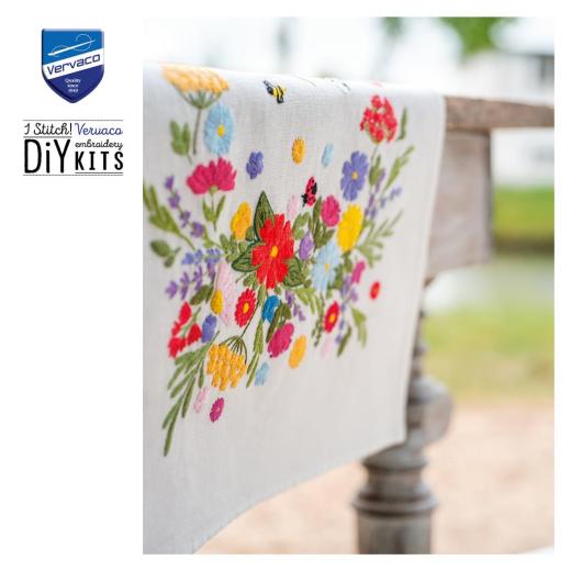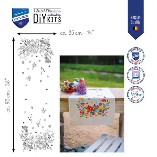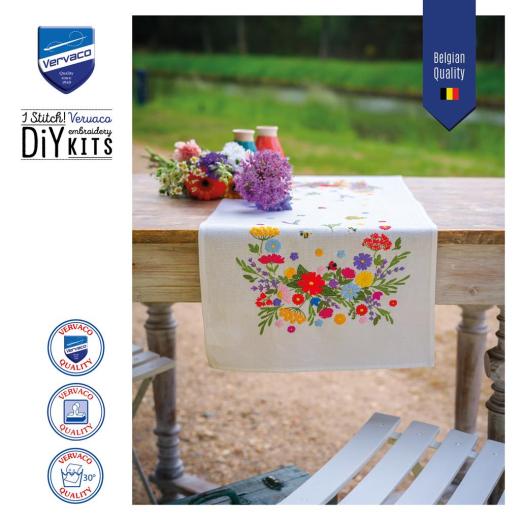 Läufer Bunte Blumenwelt bedruckt - Vervaco Verachtert (Stickpackung)