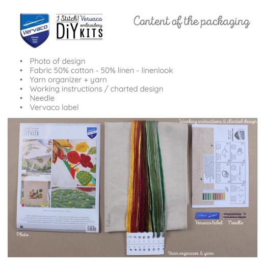 • Die Packung enthält den fertig genähten Läufer (50% Baumwolle, 50% Leinen, das vorgedruckte Design verschwindet nach der Wäsche), Stickanleitung in 8 Sprachen, Stickgarn DMC mit Garnorganisator 13 Farben (100% Baumwolle), Frontbild und Sticknadel