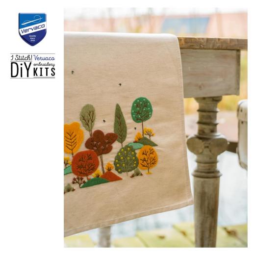 Läufer Herbstwald bedruckt - Vervaco Verachtert (Stickpackung)