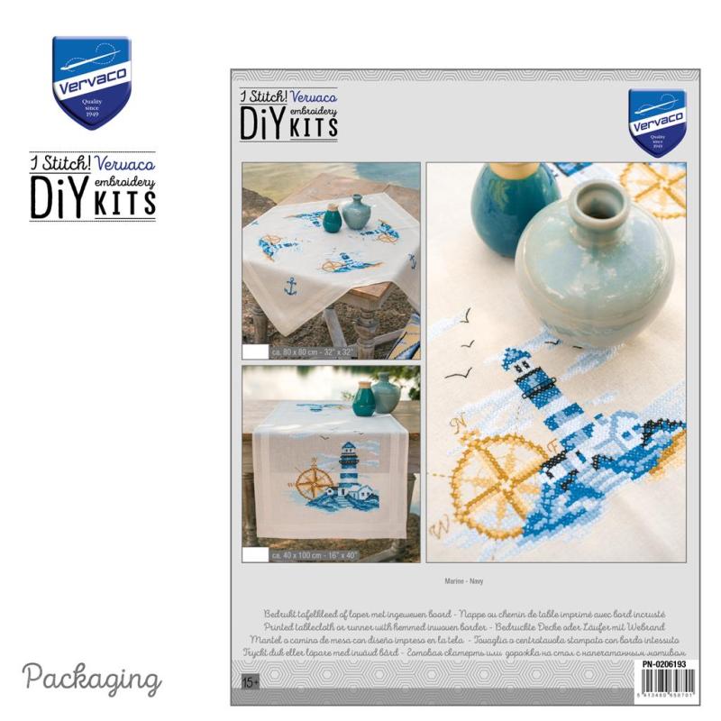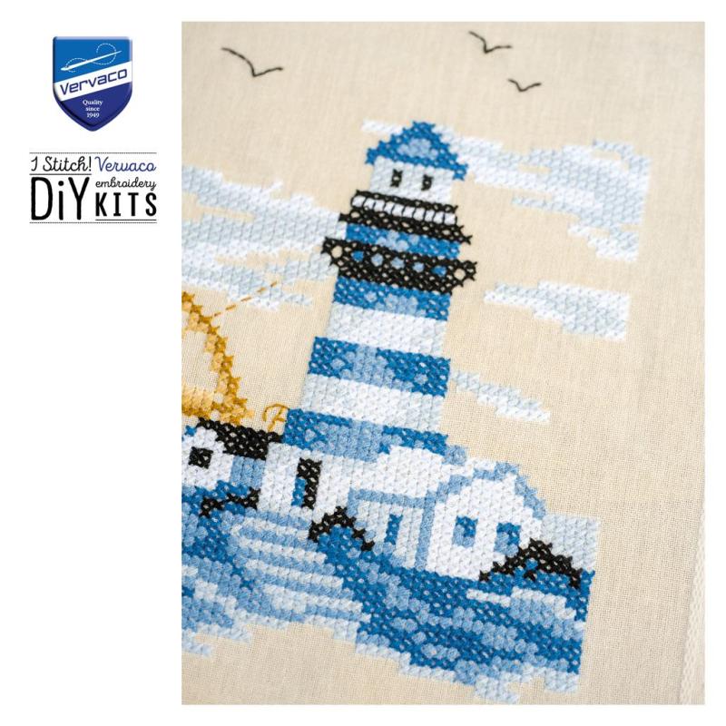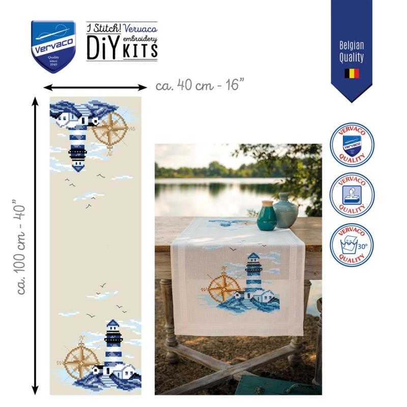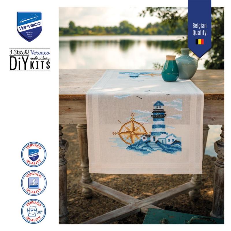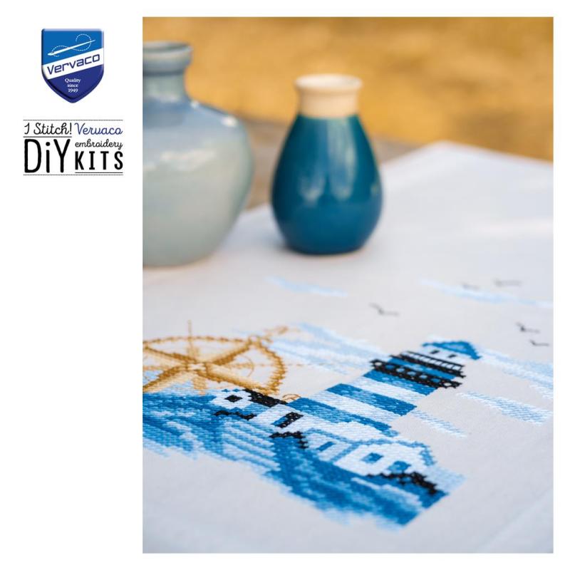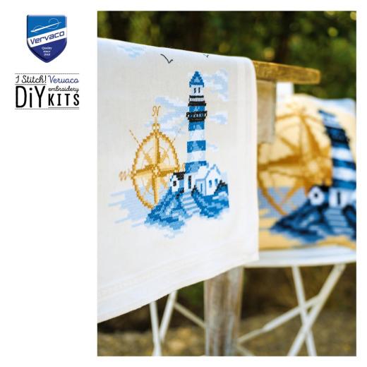• Läuferpackung, Tischwäsche, Läufer zum Besticken, Kreuzstichläufer, maritime Motive, Leuchtturm, Leuchttürme