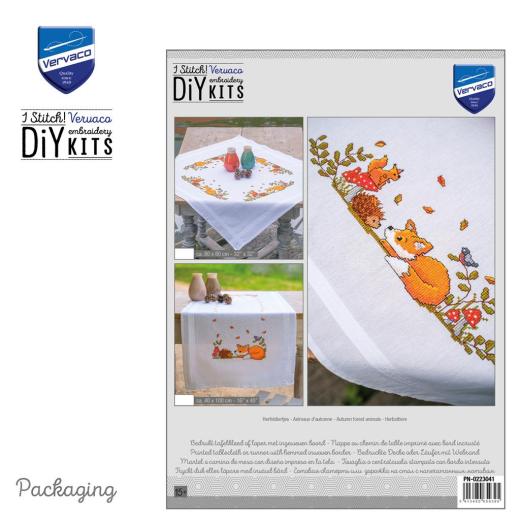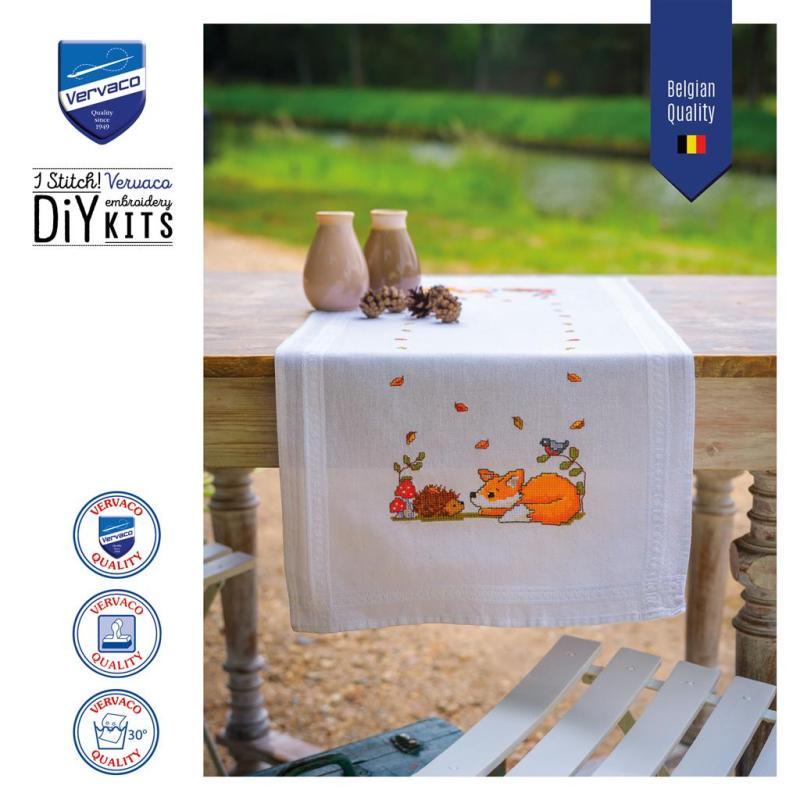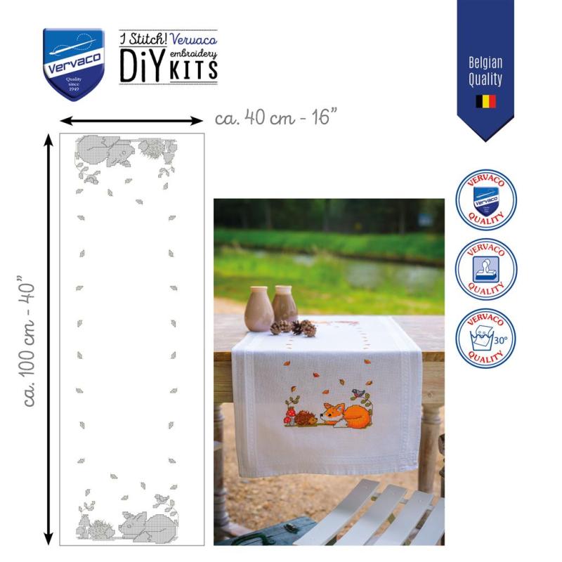 Läufer Tiere im Herbst bedruckt - Vervaco Verachtert (Stickpackung)