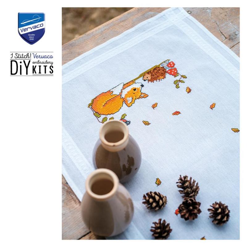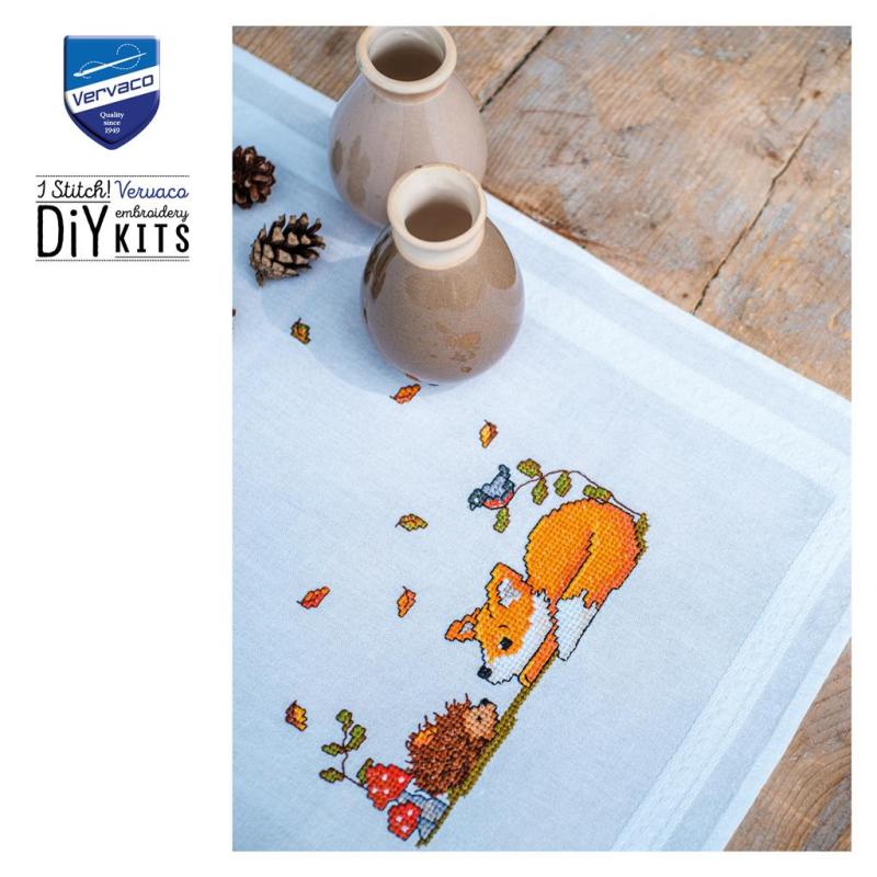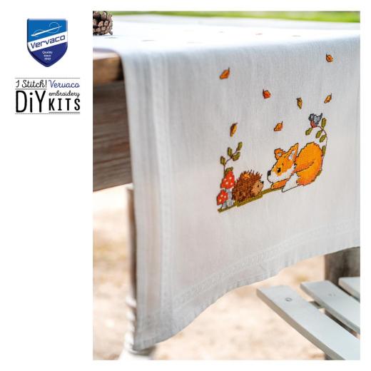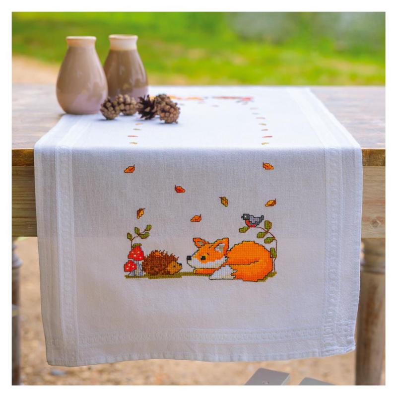 • Läuferpackung, Tischwäsche, Läufer zum Besticken, Kreuzstichläufer, Tiere, Fuchs, Füchse, Igel
