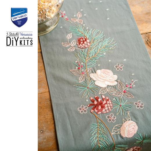 Läufer Weihnachtsrosen bedruckt - Vervaco Verachtert (Stickpackung)