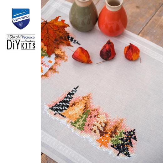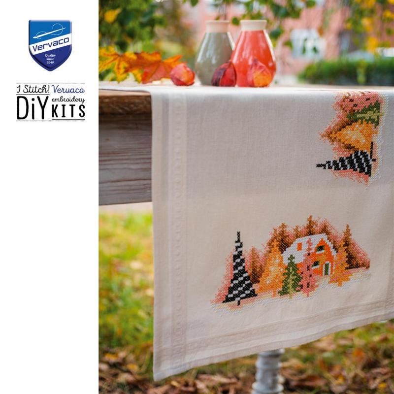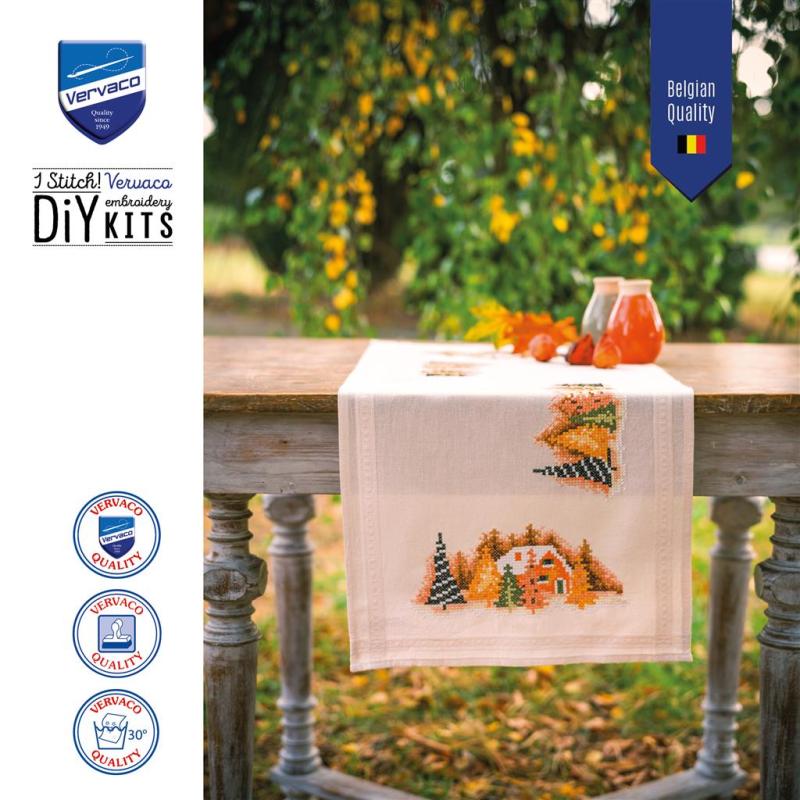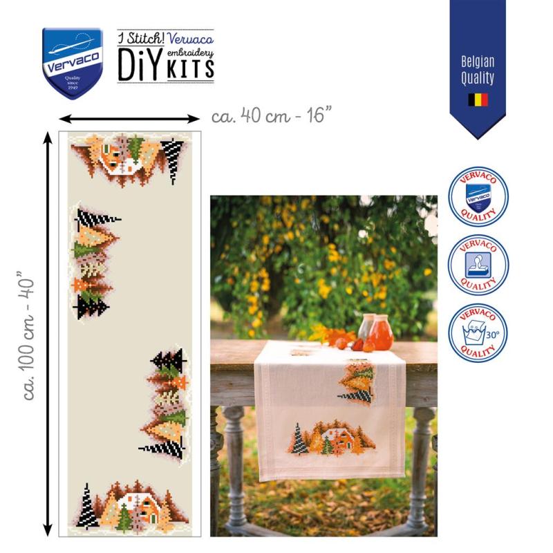 • Die Packung enthält den fertig genähten Läufer (100% Baumwolle, das vorgedruckte Design verschwindet nach der Wäsche), Stickanleitung in 8 Sprachen, Stickgarn DMC mit Garnorganisator 13 Farben (100% Baumwolle), Frontbild und Sticknadel