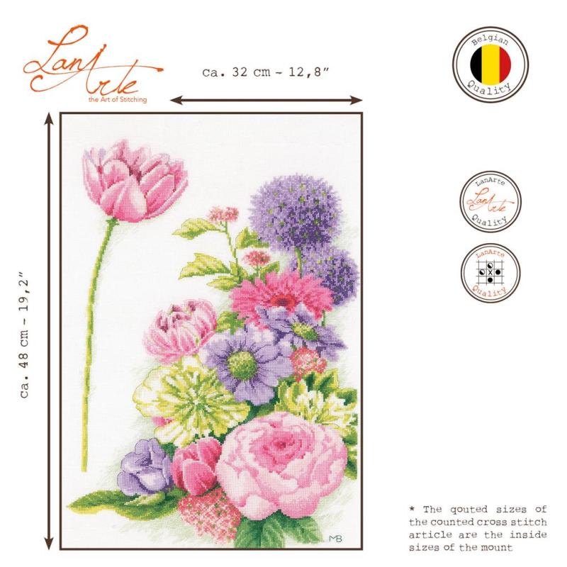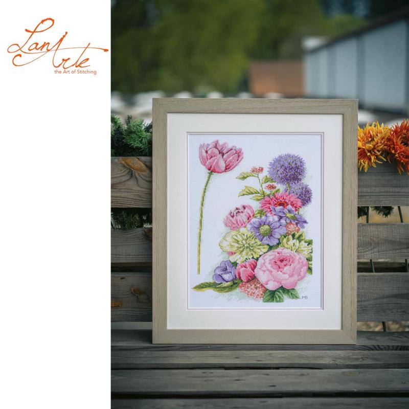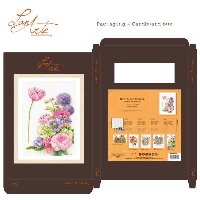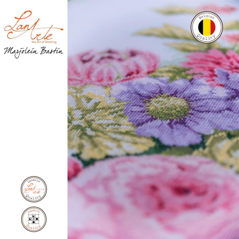 Lanarte Floral Cotton Candy Stickpackung, Blumen Kreuzstichset Lanarte, PN‑0198435, PN‑0196208, DMC Stickgarn Set, Aida 14ct Blumenmotiv, Lanarte Flowers & Gardens, Kreuzstichpackung