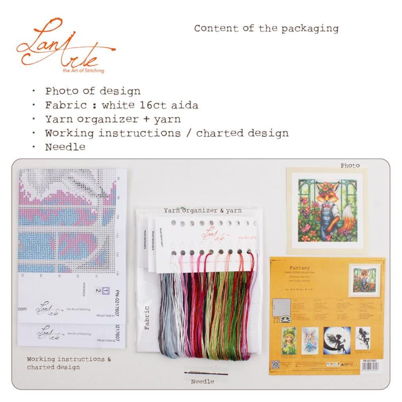 LanArte Florian the Fox Stickpackung, PN‑0217607, Fuchs Kreuzstichset, LanArte Animals Collection, DMC Stickgarn Set, Aida 16ct Stickpackung, modernes Tiermotiv Kreuzstich, Kreuzstichpackung