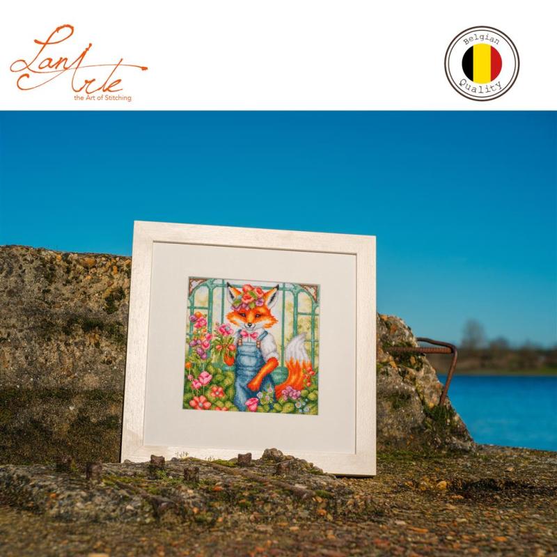 Die Kreuzstich-Stickpackung „Florian the Fox“ von LanArte zeigt ein ausdrucksstarkes, märchenhaftes Fuchsmotiv, das Natur, Eleganz und verspielte Leichtigkeit miteinander verbindet. Sein Fell ist in warmen Orange‑ und Brauntönen gehalten, fein schattiert und sehr natürlich dargestellt. Um seinen Kopf herum befinden sich zarte Blumen und Blütenzweige, die dem Bild eine poetische, fast märchenhafte Atmosphäre verleihen. Die Komposition wirkt harmonisch, freundlich und dekorativ – perfekt für moderne Wohnräume.
