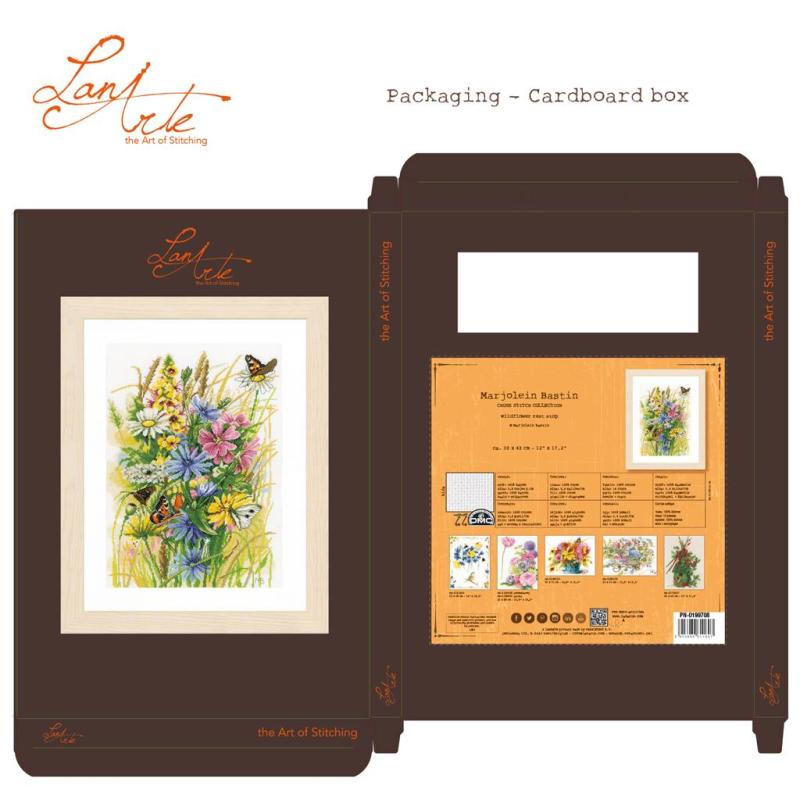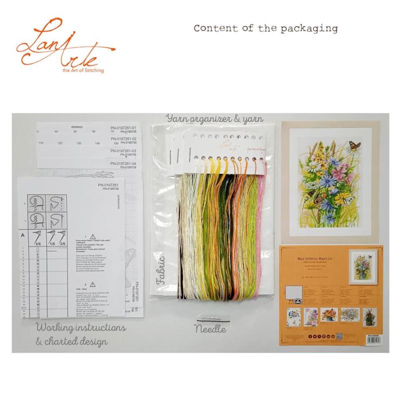 LanArte Wildflower Rest Stop Stickpackung, Marjolein Bastin Kreuzstichset, PN‑0199708, LanArte Blumen Stickset, DMC Stickgarn Set, Wildflower Cross Stitch Kit Kreuzstichpackung