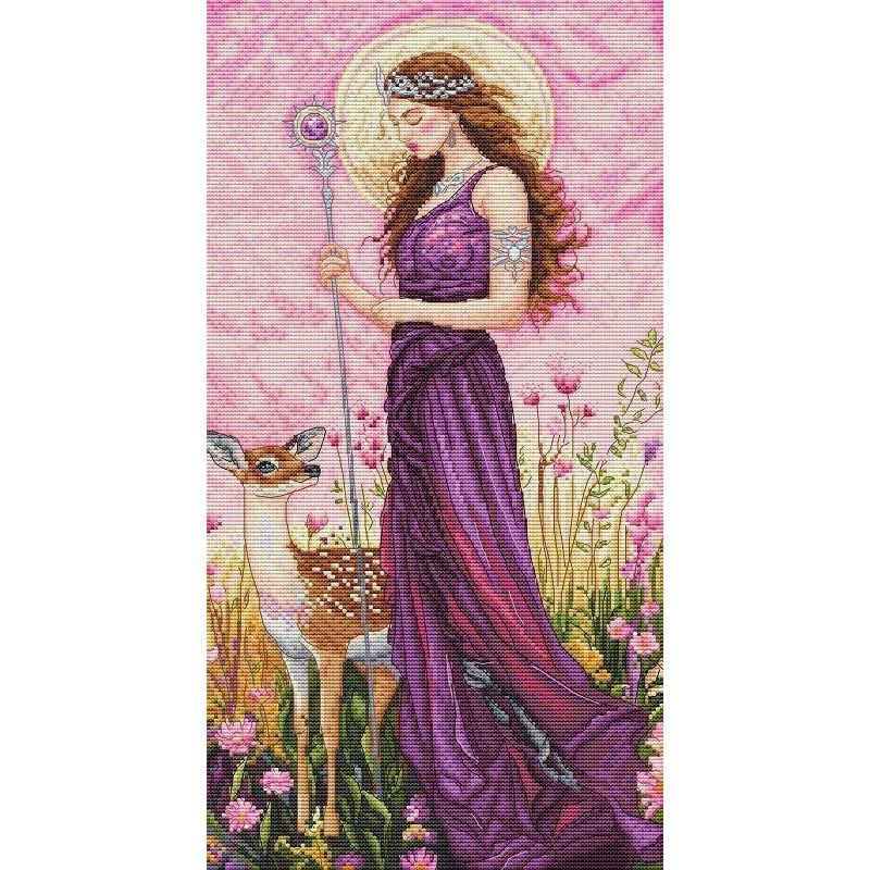 Themen: Kreuzstichpackung, Fantasy, Märchen, Mystik, Cross Stitch Kit, Leti Stitch, Goddess of the Spring, Stickpackung Sommer, Kreuzstich Göttin, Stickset 16 Count, Stickbild Jahreszeiten, Stickpackung Natur, Stickset für Erwachsene