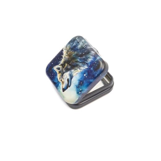 - Charmante Metalldose mit einem Wolf im Schneefall