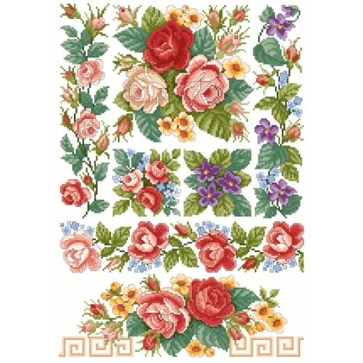 - Kreuzstich Themenbogen im Format DIN A 3, 2 Ideenbögen, farbige Stickanleitung, Garnangaben für Anchor, DMC, Madeira, Vaupel & Heilenbeck