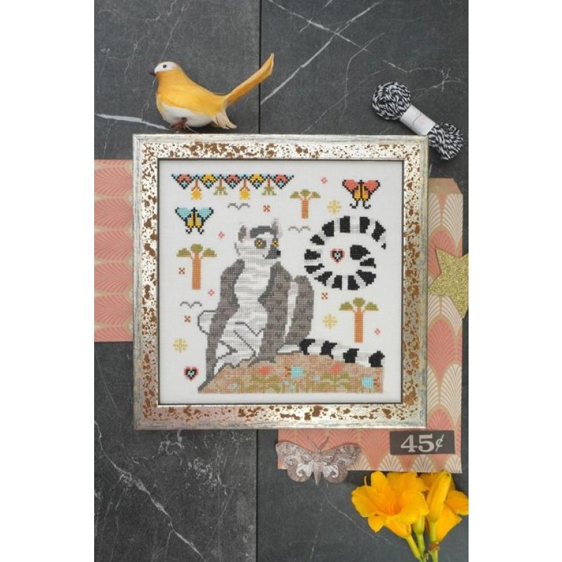 Die Stickvorlage Ring‑Tailed Lemur von Lindy Stitches bringt exotischen Charme und fröhliche Farben in dein Stickprojekt. Das Motiv zeigt einen niedlichen Katta (Ring‑Schwanz‑Lemur), der auf einem kleinen Fleckchen Boden sitzt – umgeben von farbenfrohen, stilisierten Palmen, Schmetterlingen und Vögeln.