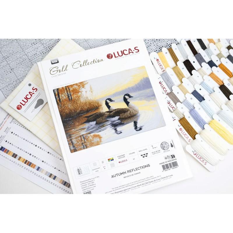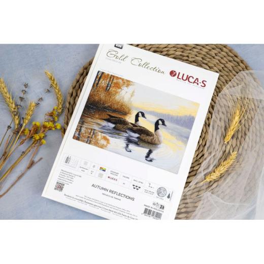 Die hochwertige Stickpackung „Autumn Reflections“ von Luca-S fängt die ruhige Magie eines goldenen Herbsttages ein. Das Motiv zeigt mehrere Enten, die sanft über einen stillen See gleiten. Das Wasser spiegelt die warmen Farben der umliegenden Herbstlandschaft wider – leuchtende Orange-, Rot- und Goldtöne schaffen eine stimmungsvolle, naturverbundene Atmosphäre.