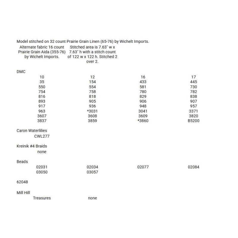 - Beads by Mill Hill: 02031, 02034, 02077, 02084, 03050, 03057, 62048