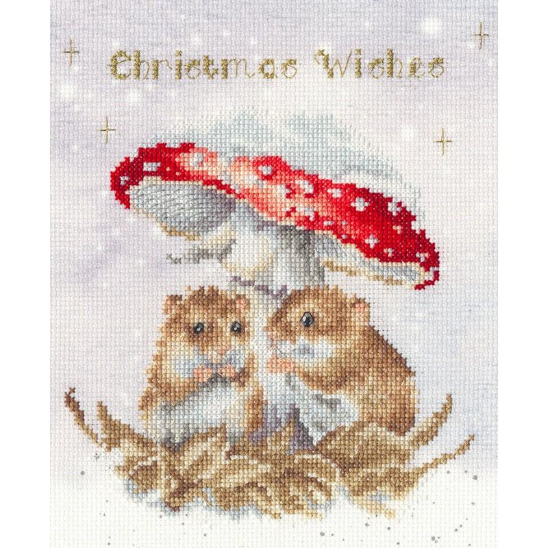 Zwei Mäuse unter dem Fliegenpilz mit Weihnachtswünschen