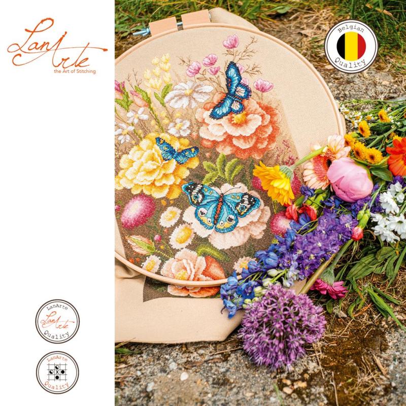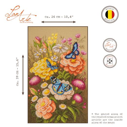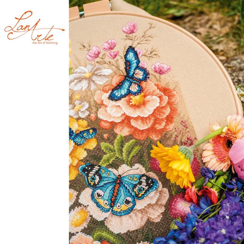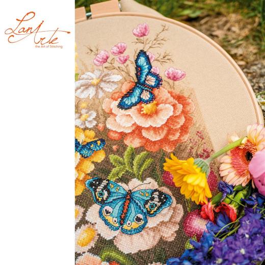 • Zählpackung mit Zählmuster, Kreuzstichset, Stickset gezählter Kreuzstich, Blumen, Garten, Natur, Tiere, Schmetterlinge