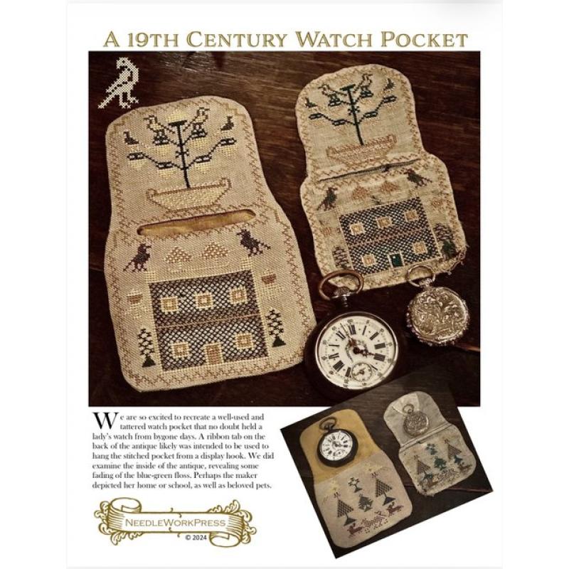 19th Century Watch Pocket Stickvorlage, NeedleWorkPress Cross Stitch, historische Stickvorlage, Reproduction Needlework, Uhrenetui Kreuzstich, antique cross stitch pattern, early American needlework, Stickmuster Vintage Tasche, historisches Stickprojekt, rustic cross stitch design, NeedleWorkPress 2024, traditionelle Stickerei, primitive style stitching, reproduction pattern, kleines Stickprojekt