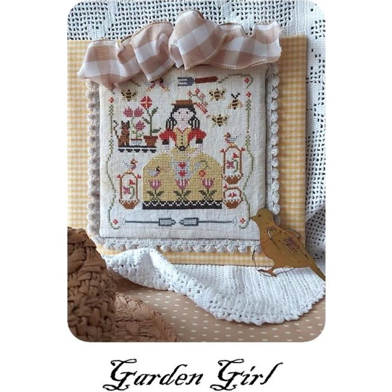 Garden Girl Stickvorlage, Nikyscreations Cross Stitch, Gartenmädchen Stickmuster, florale Kreuzstichvorlage, Country Style Stickerei, nostalgische Stickmuster, Frühling Sommer Stickerei, Mädchenmotiv Kreuzstich, Vintage Stickvorlage, Garden Sampler Pattern, kleine Stickprojekte, romantische Stickerei, Nikyscreations Pattern, florale Mini Stickerei, Gartenmotiv Stickvorlage
