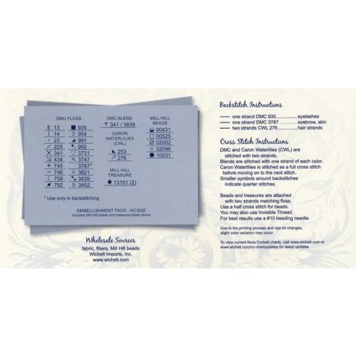 - Mill Hill Perlen: 00431, 00525, 02002, 02096, 10031 (nicht mehr lieferbar, Ersatzartikel 03038)