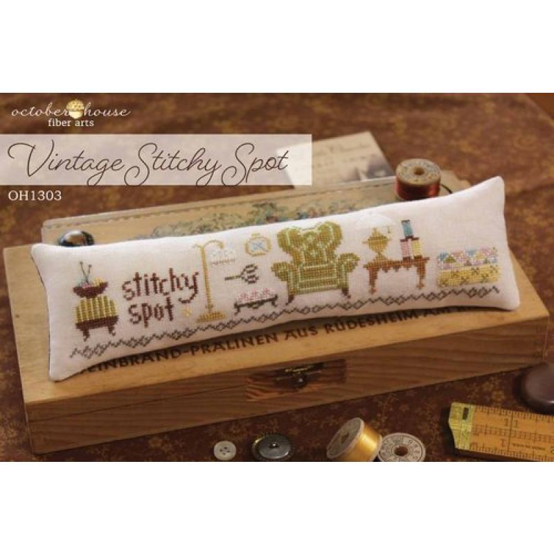 Stickvorlage Vintage Stitchy Spot, October House Fiber Arts Stickmuster, Nähzimmer Kreuzstich, Vintage Nähmotiv, Cozy Stitching Pattern, Handarbeitsplatz Stickvorlage, Stickvorlage kaufen